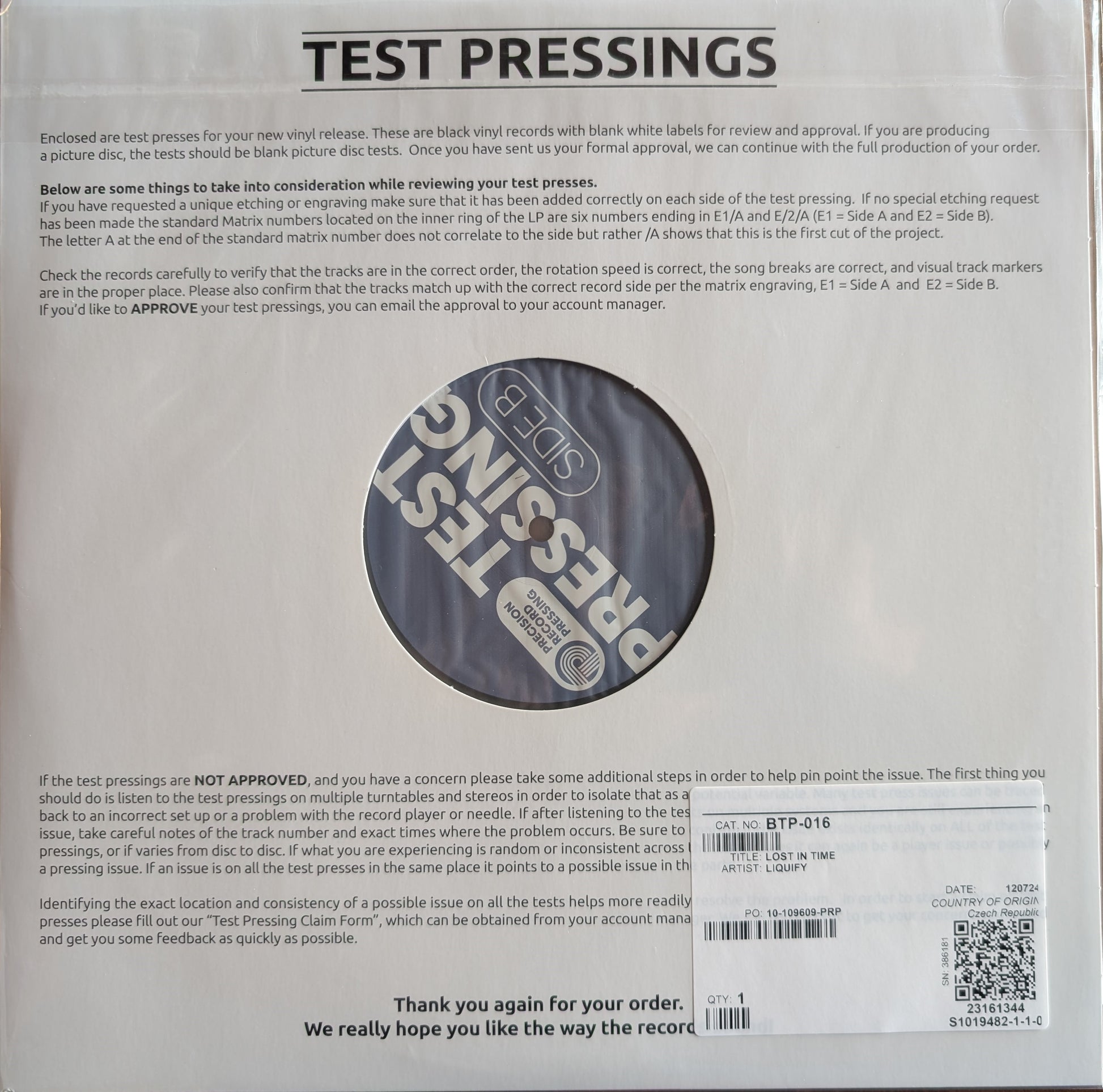 Test Pressings are limited to 5 copies. Test Pressing ships as of Mid-March, 2025