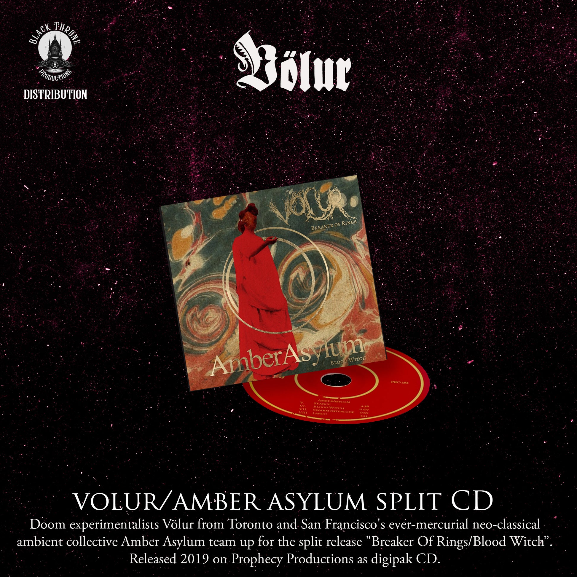 Doom experimentalists Völur from Toronto and San Francisco's ever-mercurial neo-classical ambient collective Amber Asylum team up for the split release "Breaker Of Rings/Blood Witch." Both artists are driven by the vision of creating dark and heavy music built around the use of strings, yet differ in approach while beautifully complimenting one another on this release.